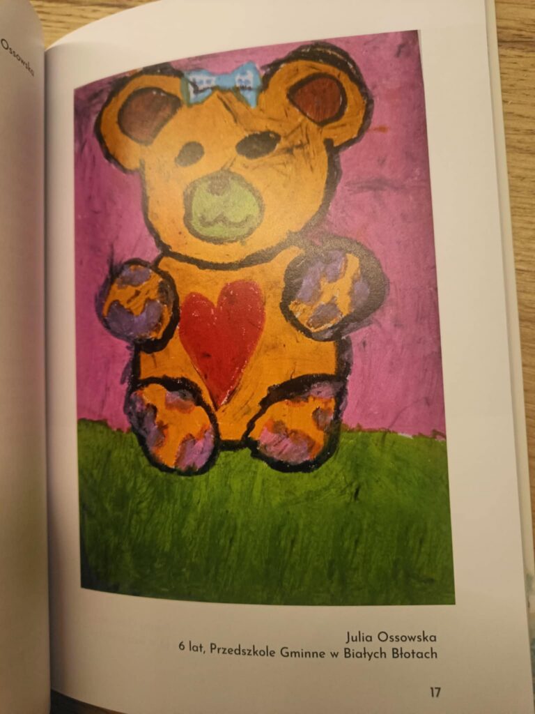 Julia Ossowska z grupy C2 „Elfy” wykonała przepiękną ilustrację do wiersza, pt. „Kolorowy miś”, napisanego przez swoją babcię – panią Hannę Ossowską, który znalazł się w najnowszym tomiku wierszy wydanym przez Polskie Towarzystwo Terapeutyczne (PTP) w Gdańsku, pt. „Nie jesteś wyjątkiem”. Jesteśmy bardzo dumni z obu Pań i gratulujemy zarówno talentu pisarskiego jak i plastycznego. Liczymy na powstanie kolejnych utworów i wyjątkowych prac.