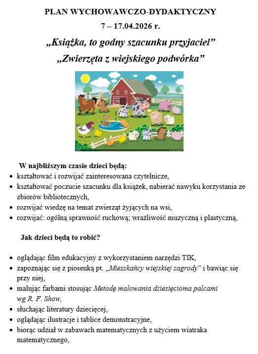 Plan pracy dydaktyczno-wychowawczej na miesiąc kwiecień 2026r.